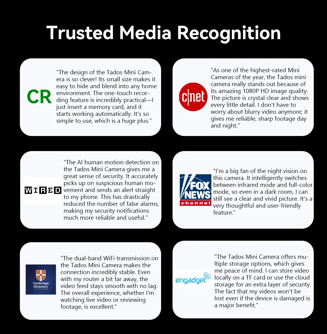 • Dual Storage (TF Card + Cloud) – Keeps your recordings safe and prevents data loss