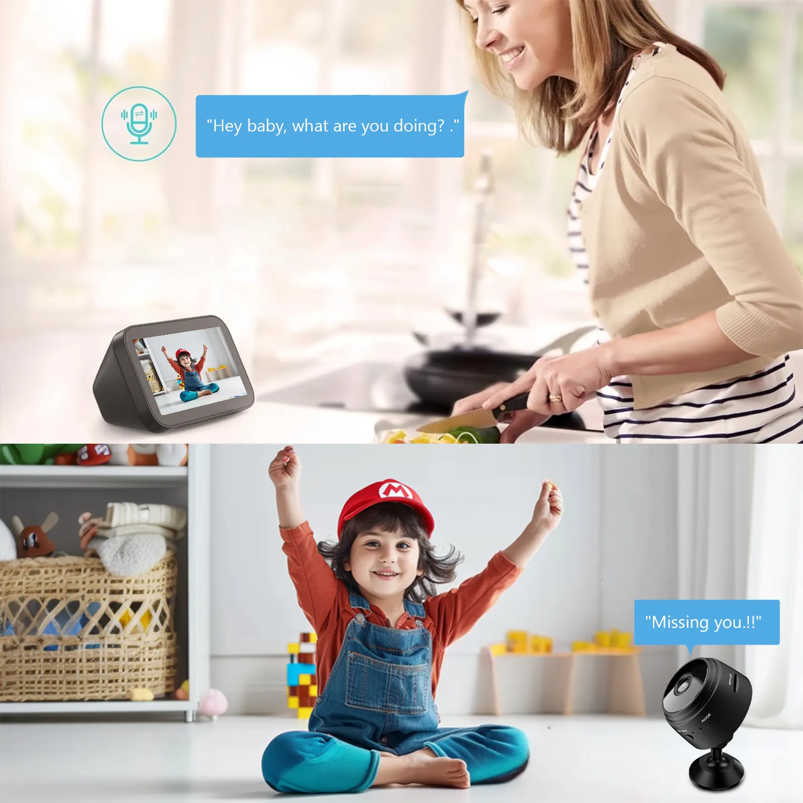 Simply open the mobile app to talk and listen in real-time. Whether you're soothing a child, checking in with a family member, or even talking to a pet, it feels like you're right there with them. Communication is instant and effortless, keeping you connected wherever you are.